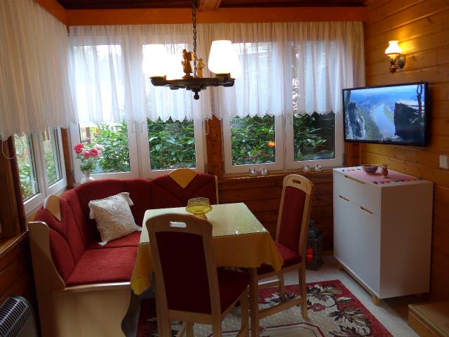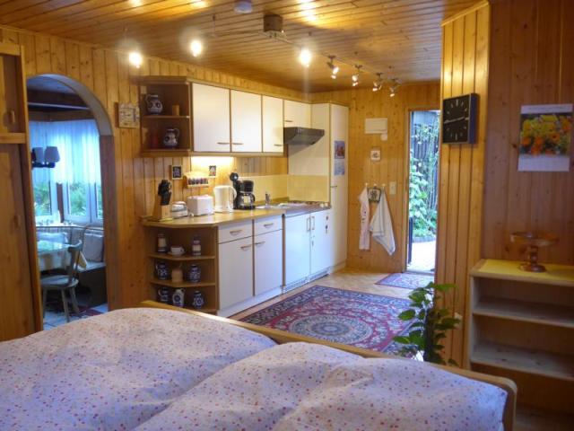 Ihre Unterkunft besteht aus einem Schlafraum für 2 Personen mit separater Sanitärzelle (Dusche, WC) sowie einer Mini-Küche mit 2 elektrischen Herdplatten (ohne Backofen). Zur Ausstattung gehören Kühlschrank, Kaffeemaschine, Toaster, Wasserkocher, Eierkocher und Geschirr. Die Veranda bietet eine Schlafcouch (Aufbettung), einen Essbereich, einen Flat-TV (SAT) sowie ein Internetradio. Das Haus hat eine Elektro-Heizung. Zudem steht Ihnen ein kostenfreies WLAN zur Verfügung.